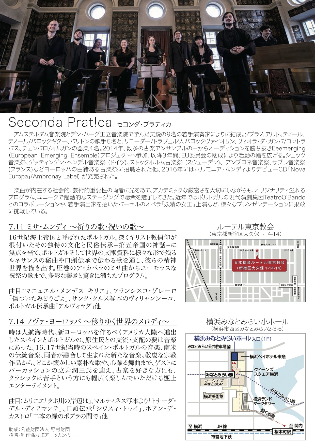セコンダ・プラティカとは…世界6カ国から集まり、アムステルダム音楽院とデン・ハーグ王立音楽院で出会った声楽5名・器楽4名の若手演奏家により結成。